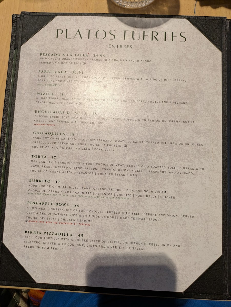 Steak / pork belly / chicken tortilla chips sauteed in salsa verde. Topped with choice of meat, sour cream, queso fresco & onion. Served with rice and beans.