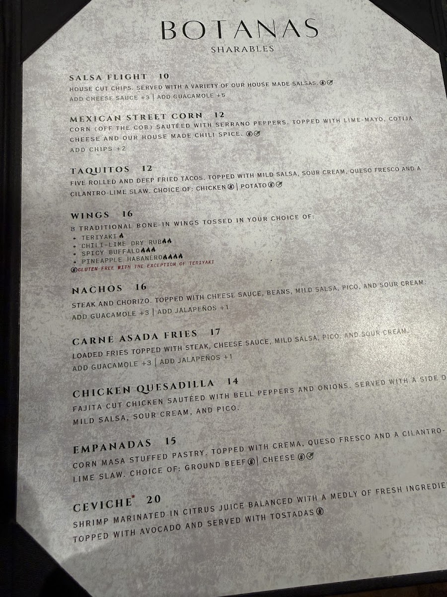 5 chicken tacos rolled & deep fried. Comes topped w/ salsa, sour cream, queso fresco, lettuce, pico & guac